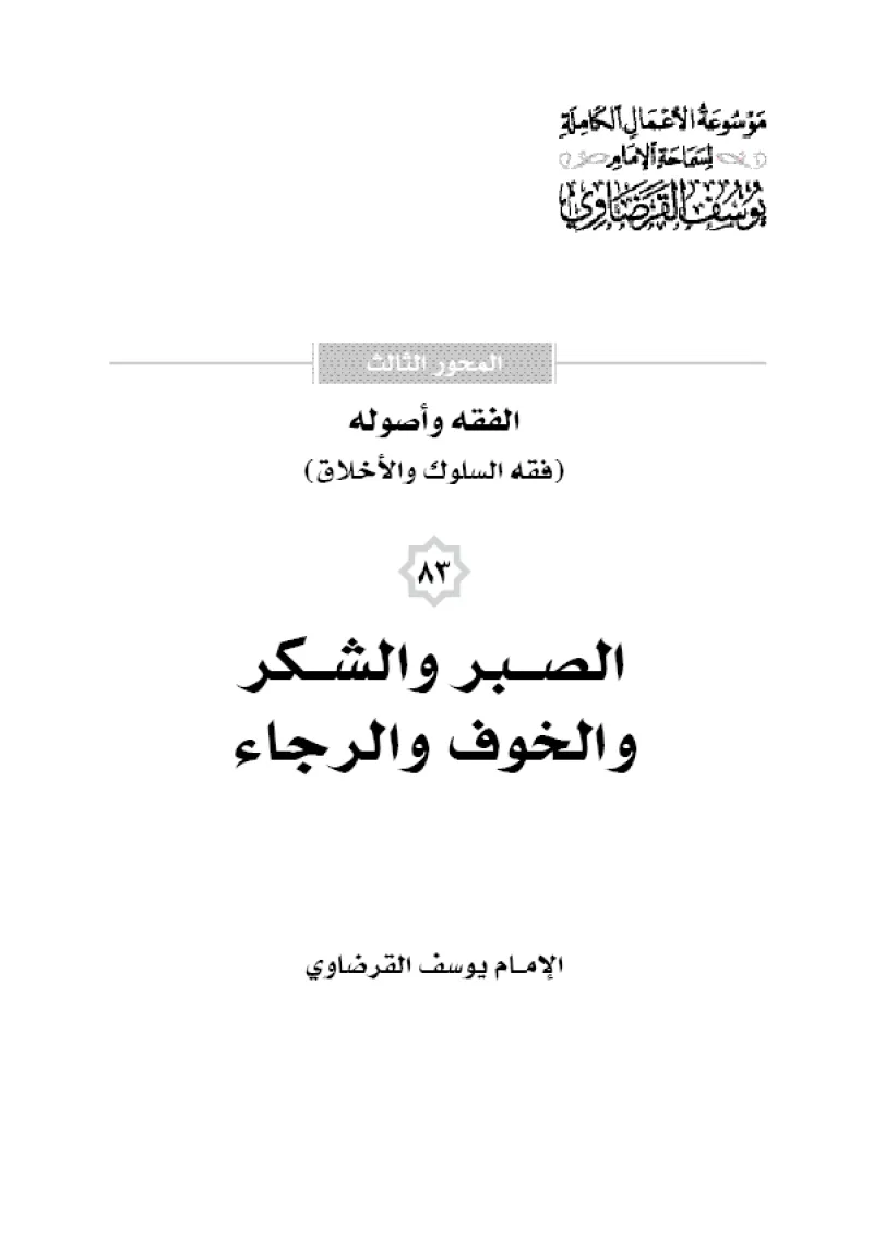 هذا الكتاب في «فقه السلوك» الذي نسير به في «الطريق إلى الله»، يتحدث عن أربعة مقامات من أهم ما يُعنى به المؤمنون الصادقون، نوَّه بهما القرآن، ونوَّهتْ بهما السُّنَّة، ونوّه بهما الصحابة ومن اتبعهم بإحسان، من خيرة أبناء الأمة المحمدية،...