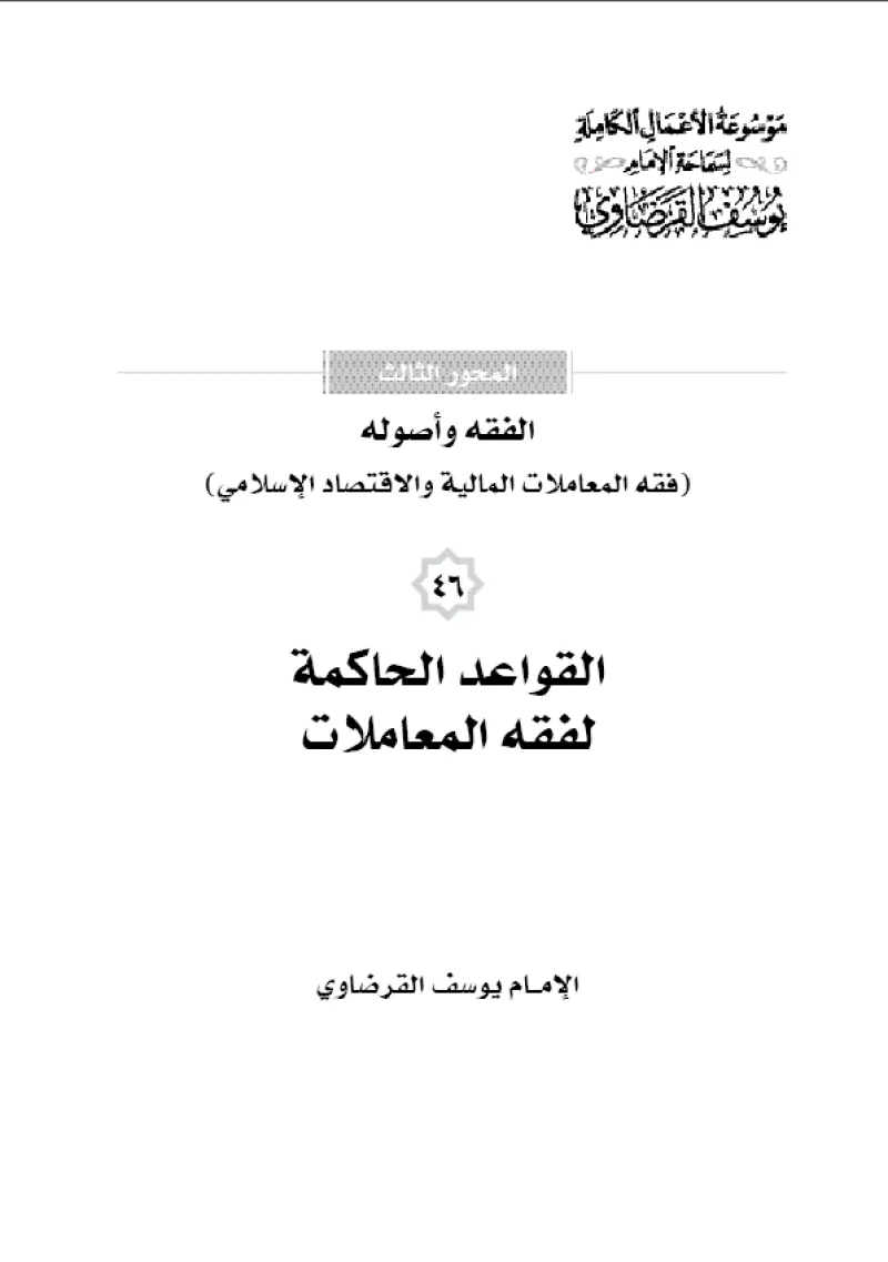 46.القواعد الحاكمة لفقه المعاملات هذا الكتاب يتناول سبعا من القواعد الكبيرة في فقه المعاملات، تندرج تحتها قواعد أخرى فرعيَّة وجزئيَّات وتفصيلات كثيرة.* لا يستغني ذو اجتهاد كلِّي أو جزئي، ترجيحي أو إبداعي عن القواعد والمبادئ التي تضبط الفقه، حتى لا...